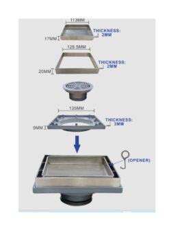 135MM X 135MM X 2MM #SS304 TILE-INSERT SQUARE FLOOR DRAIN (LOW VERSION) C/W MOSQUITO TRAP, (Showy 2469-599)