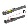 Lightweight anodized aluminium alloy body. Operated by 3 x AAA batteries (not included). IP54 water resistant.